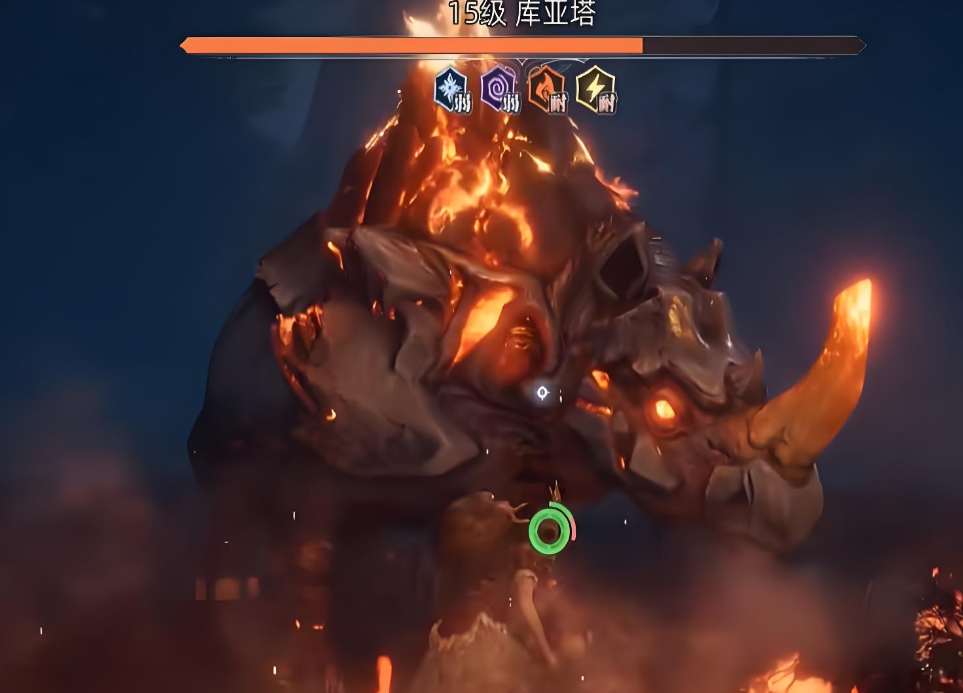 一旦准备好武器,就可以开始挑战库亚塔了。这只怪兽外形如犀牛,浑身覆盖着火焰,攻击力极其强大,一旦被击中,玩家将承受巨大的伤害。因此,在与库亚塔交战时,尽量避免近身战斗,选择远程作战将是更明智的策略。