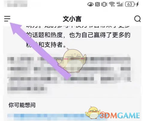 1、首先打开文小言,点击位于右上角的三条横线图标,如下所示: